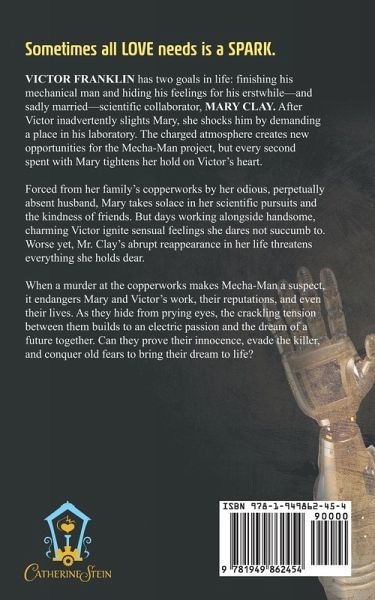 Sometimes all love needs is a spark. Victor Franklin has two goals in life: finishing his mechanical man and hiding his feelings for his erstwhile-and sadly married-scientific collaborator, Mary Clay. After Victor inadvertently slights Mary, she shocks him by demanding a place in his laboratory. The charged atmosphere creates new opportunities for the Mecha-Man project, but every second spent with Mary tightens her hold on Victor's heart. Forced from her family's copperworks by her odious, perpetually absent husband, Mary takes solace in her scientific pursuits and the kindness of friends. But days working alongside handsome, charming Victor ignite sensual feelings she dares not succumb to. Worse yet, Mr. Clay's abrupt reappearance in her life threatens everything she holds dear. When a murder at the copperworks makes Mecha-Man a suspect, it endangers Mary and Victor's work, their reputations, and even their lives. As they hide from prying eyes, the crackling tension between them builds to an electric passion and the dream of a future together. Can they prove their innocence, evade the killer, and conquer old fears to bring their dream to life?