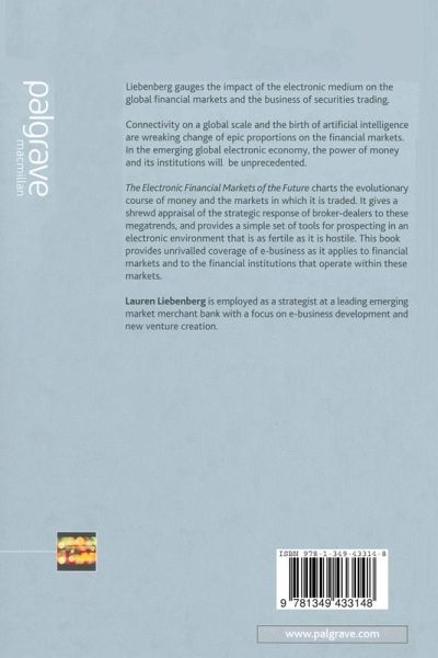 The Electronic Financial Markets of the Future is concerned with e-business as it applies to financial institutions who operate within these markets. It presents a strategic overview of the impact and implications of technology in these markets. The model identifies two primary inter-related technological causes of change and the elegance and simplicity of the model and format provide a means to evaluate devlopments in the financial markets. Aimed at all high level financial practitioners evaluating the application of e-business and in particularly to banks on the sell-side in their capacities as securities dealers.