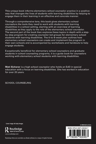 This unique book informs elementary school counselor practice in a positive way that changes the lives of students with learning disabilities by helping to engage them in their learning in an effective and concrete manner. Through a comprehensive lens, this book gives elementary school counselors the tools they need to work with students with learning disabilities in a school setting, starting with an overview of learning disabilities as they apply to the role of the elementary school counselor. The second part of the book then explores these topics in depth with a step-by-step program for creating counselor-led groups for elementary school students with learning disabilities. The 6-to-8-week plan outlines how elementary school counselors can create and implement the program in their own schools and is accompanied by worksheets and handouts to help engage students. Exceptionally beneficial for elementary school counselors and graduate students in school counseling programs, it is a guide book for counselors working with elementary school students with learning disabilities. ¿