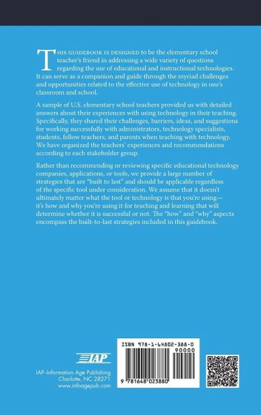 This guidebook is designed to be the elementary school teacher's friend in addressing a wide variety of questions regarding the use of educational and instructional technologies. It can serve as a companion and guide through the myriad challenges and opportunities related to the effective use of technology in one's classroom and school. A sample of U.S. elementary school teachers provided us with detailed answers about their experiences with using technology in their teaching. Specifically, they shared their challenges, barriers, ideas, and suggestions for working successfully with administrators, technology specialists, students, fellow teachers, and parents when teaching with technology. We have organized the teachers' experiences and recommendations according to each stakeholder group. Rather than recommending or reviewing specific educational technology companies, applications, or tools, we provide a large number of strategies that are "built to last" and should be applicable regardless of the specific tool under consideration. We assume that it doesn't ultimately matter what the tool or technology is that you're using-it's how and why you're using it for teaching and learning that will determine whether it is successful or not. The "how" and "why" aspects encompass the built-to-last strategies included in this guidebook.
