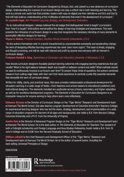 Written for utility, clarity, and practical value, The Elements of Education for Curriculum Designers provides indispensable professional development for educators working in a wide range of fields â from teachers and school leaders to educational publishers and instructional designers.