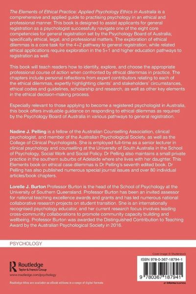 This book is the first of its kind to offer a step-by-step approach to applying ethics to a wide range of ethical dilemmas and challenges in the Australian applied context. Essential to those applying to become a registered psychologist in Australia, it outlines how to respond to ethical dilemmas in the form required by the PBA.
