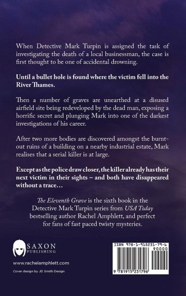 When Detective Mark Turpin is assigned the task of investigating the death of a local businessman, the case is first thought to be one of accidental drowning. Until a bullet hole is found where the victim fell into the River Thames. Then a number of graves are unearthed at a disused airfield site being redeveloped by the dead man, exposing a horrific secret and plunging Mark into one of the darkest investigations of his career. After two more bodies are discovered amongst the burnt-out ruins of a building on a nearby industrial estate, Mark realises that a serial killer is at large. Except as the police draw closer, the killer already has their next victim in their sights - and both have disappeared without a trace... The Eleventh Grave is the sixth book in the Detective Mark Turpin series from USA Today bestselling author Rachel Amphlett, and perfect for fans of fast paced twisty mysteries.