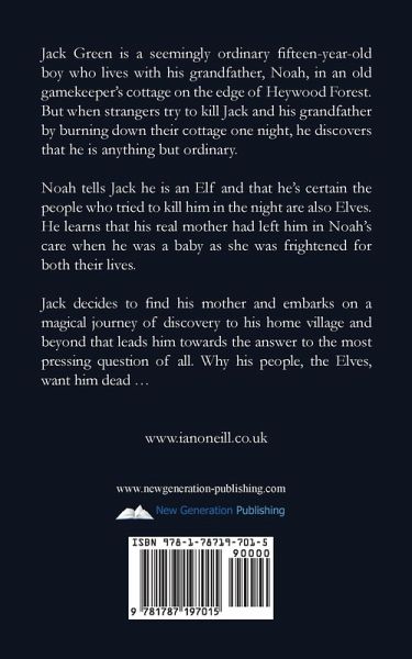 Jack Green is a seemingly ordinary fifteen-year-old boy who lives with his grandfather, Noah, in an old gamekeeper's cottage on the edge of Heywood Forest. But when strangers try to kill Jack and his grandfather by burning down their cottage one night, he discovers that he is anything but ordinary. Noah tells Jack he is an Elf and that he's certain the people who tried to kill him in the night are also Elves. He learns that his real mother had left him in Noah's care when he was a baby as she was frightened for both their lives. Jack decides to find his mother and embarks on a magical journey of discovery to his home village and beyond that leads him towards the answer to the most pressing question of all. Why his people, the Elves, want him dead … www.ianoneill.co.uk