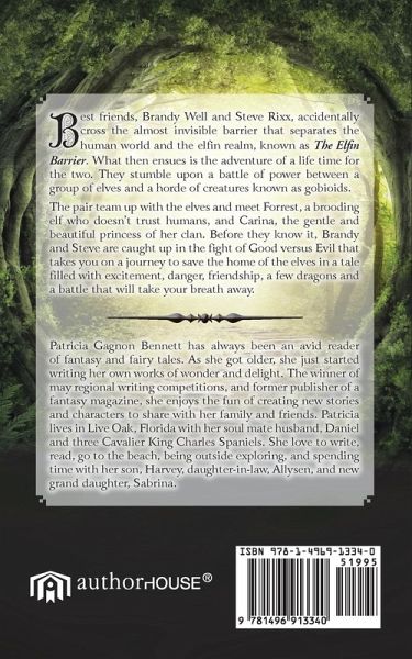 Best friends, Brandy Well and Steve Rixx, accidentally cross the almost invisible barrier that separates the human world and the elfin realm, known as The Elfin Barrier. What then ensues is the adventure of a life time for the two. They stumble upon a battle of power between a group of elves and a horde of creatures known as gobioids. The pair team up with the elves and meet Forrest, a brooding elf who doesn't trust humans, and Carina, the gentle and beautiful princess of her clan. Before they know it, Brandy and Steve are caught up in the fight of Good versus Evil that takes you on a journey to save the home of the elves in a tale filled with excitement, danger, friendship, a few dragons and a battle that will take your breath away.