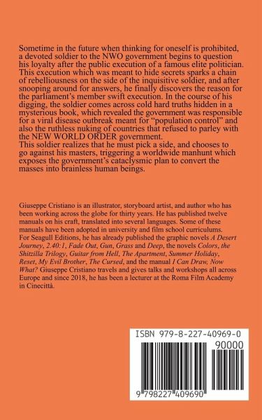Sometime in the future when thinking for oneself is prohibited, a devoted soldier to the NWO government begins to question his loyalty after the public execution of a famous elite politician. This execution which was meant to hide secrets sparks a chain of rebelliousness on the side of the inquisitive soldier, and after snooping around for answers, he finally discovers the reason for the parliament's member swift execution. In the course of his digging, the soldier comes across cold hard truths hidden in a mysterious book, which revealed the government was responsible for a viral disease outbreak meant for "population control" and also the ruthless nuking of countries that refused to parley with the NEW WORLD ORDER government. This soldier realizes that he must pick a side, and chooses to go against his masters, triggering a worldwide manhunt which exposes the government's cataclysmic plan to convert the masses into brainless human beings.