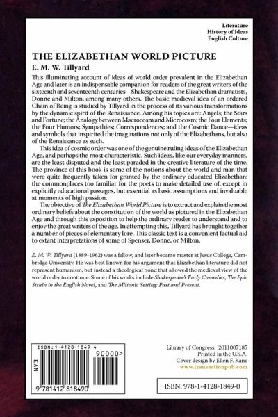 This illuminating account of ideas of world order prevalent in the Elizabethan Age and later is an indispensable companion for readers of the great writers of the sixteenth and seventeenth centuries-Shakespeare and the Elizabethan dramatists, Donne and Milton, among many others. The basic medieval idea of an ordered Chain of Being is studied by Tillyard in the process of its various transformations by the dynamic spirit of the Renaissance. Among his topics are: Angels; the Stars and Fortune; the Analogy between Macrocosm and Microcosm; the Four Elements; the Four Humors; Sympathies; Correspondences; and the Cosmic Dance-ideas and symbols that inspirited the imaginations not only of the Elizabethans, but also of the Renaissance as such. This idea of cosmic order was one of the genuine ruling ideas of the Elizabethan Age, and perhaps the most characteristic. Such ideas, like our everyday manners, are the least disputed and the least paraded in the creative literature of the time. The province of this book is some of the notions about the world and man that were quite frequently taken for granted by the ordinary educated Elizabethan; the commonplaces too familiar for the poets to make detailed use of, except in explicitly educational passages, but essential as basic assumptions and invaluable at moments of high passion. The objective of The Elizabethan World Picture is to extract and explain the most ordinary beliefs about the constitution of the world as pictured in the Elizabethan Age and through this exposition to help the ordinary reader to understand and to enjoy the great writers of the age. In attempting this, Tillyard has brought together a number of pieces of elementary lore. This classic text is a convenient factual aid to extant interpretations of some of Spenser, Donne, or Milton.