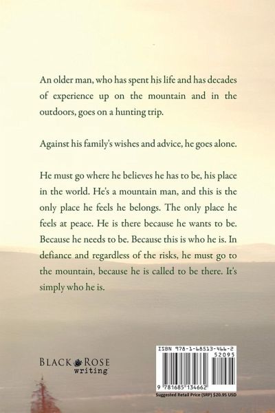 An older man, who has spent his life and has decades of experience up on the mountain and in the outdoors, goes on a hunting trip. He must go where he believes he has to be, his place in the world. He's a mountain man, and this is the only place he feels he belongs. The only place he feels at peace. He is there because he wants to be. But this is not just another hunting trip; it's a journey back to his own sense of being. Perhaps his final one. In defiance and regardless of the risks, he must go to the mountain, because he is called to be there. It's simply who he is. Ignoring the warnings from his loved ones, he sets off alone. They didn't understand. How could they? No matter. He knew he'd be back to them soon and that he'd be fine. As much as he is called to the mountain, with its serene calm, it also holds unseen dangers. He knows these risks very well and has faced them many times before. Yet, this time, there was an undercurrent of something different, a hint of warning that he was quick to disregard with the stubbornness of a man who had always lived by his own rules. Immersed in a place he has always considered sacred; the strain of the journey takes its toll, and the risks set in differently than they ever have before. The mountain, which had given him so much life, now seems prepared to take it away. As the mountain and its elements turn against him, he does all he can to make it back to his family alive. He knows, in the deepest part of his being, that this might be the end. He knows his family would mourn. But he also knows they would understand, eventually. To him, this is where he had always been meant to end his journey.