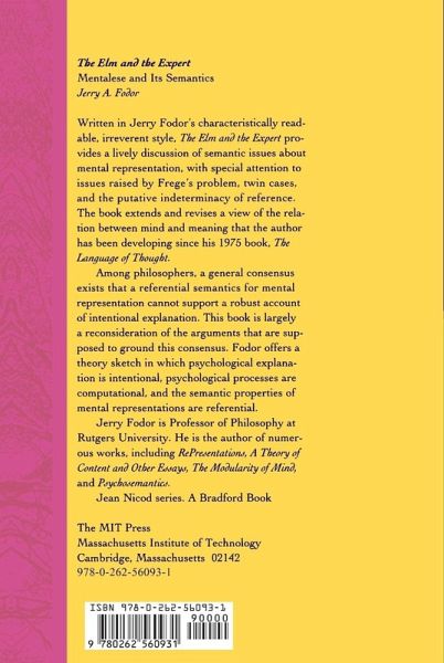 The Elm and the Expert provides a lively discussion of semantic issues about mental representation, with special attention to issues raised by Frege's problem, twin cases, and the putative indeterminacy of reference. The book extends and revises a view of the relation between mind and meaning that the author has been developing since his 1975 book, The Language of Thought. Among philosophers, a general consensus exists that a referential semantics for mental representation cannot support a robust account of intentional explanation. This book is largely a reconsideration of the arguments that are supposed to ground this consensus. Fodor offers a theory sketch in which psychological explanation is intentional, psychological processes are computational, and the semantic properties of mental representations are referential.