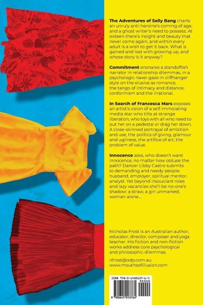 The Adventures of Sally Bang charts an unruly anti-heroine's coming of age. Commitment ensnares a narrator. In Search of Francesca Mars exposes an artist. Innocence unveils a solitary dancer.