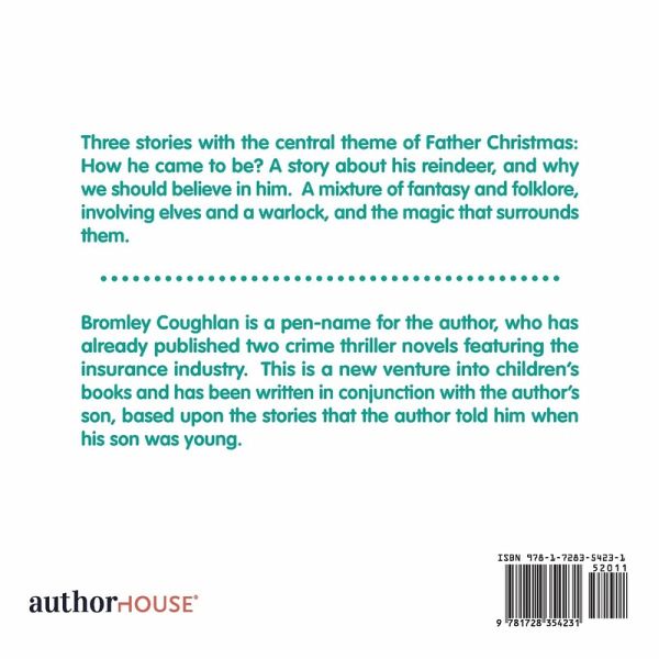 Three stories with the central theme of Father Christmas: How he came to be? A story about his reindeer, and why we should believe in him. A mixture of fantasy and folklore, involving elves and a warlock, and the magic that surrounds them.