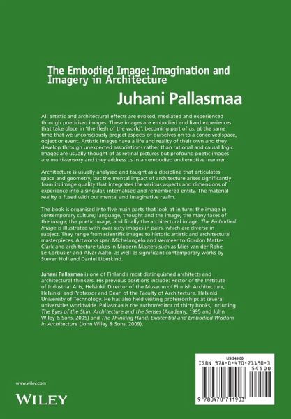Architecture is usually analyzed and taught as a discipline that articulates space and geometry, but the mental impact of architecture arises significantly from its image. Written by distinguished writer and architect Juhani Pallasmaa, this book examines at the image in culture; the nature of the image and imagination; and the specific characteristics of the artistic image, concluding with the architectural image. The Embodied Image is illustrated with more than 40 paired images, ranging from scientific images to historic artistic and architectural masterpieces, and contemporary architectural and artistic works.