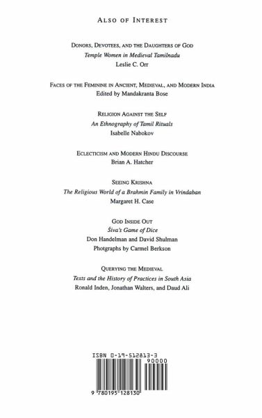 Karen Prentiss offers an interpretive history of bhakti, an influential religious perspective in Hinduism. She argues that although bhakti is mentioned in every contemporary sourcebook on Indian religions, it still lacks an agreed-upon definition. "Devotion" is found to be the most commonly used synonym. Prentiss seeks a new perspective on this elusive concept. Her analysis of Tamil (south Indian) materials leads her to suggest that bhakti be understood as a doctrine of embodiment. Bhakti, she says, urges people towards active engagement in the worship of God. She proposes that the term "devotion" be replaced by "participation," emphasizing bhakti's call for engagement in worship and the necessity of embodiment to fulfill that obligation. The book ends with two appendices presenting translations of hymns and an important philosophical text.