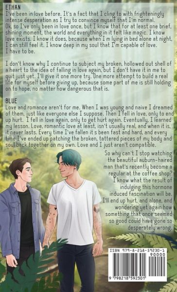 Ethan I've been in love before. It's a fact that I cling to with frighteningly intense desperation as I try to convince myself that I'm normal. Ok, so I've only been in love once, but I know that for at least one brief, shining moment, the world and everything in it felt like magic. I know love exists. I know it does, because when I'm lying in bed alone at night, I can still feel it. I know deep in my soul that I'm capable of love. I have to be. I don't know why I continue to subject my broken, hollowed out shell of a heart to the idea of falling in love again, but I don't have it in me to quit just yet. I'll give it one more try. One more attempt to build a real life for myself before giving up, because some part of me is still holding on to hope, no matter how dangerous that is. Blue Love and romance aren't for me. When I was young and naïve I dreamed of them, just like everyone else I suppose. Then I fell in love, only to end up hurt. I fell in love again, only to get hurt again. Eventually, I learned my lesson. Love, romantic love at least, isn't usually real, and when it is, it never lasts. Every time I've fallen it's been fast and hard, and every time I've ended up patching the broken, tattered pieces of my body and soul back together on my own. Love and I just aren't compatible. So why can't I stop watching the beautiful auburn-haired man that's recently become a regular at the coffee shop? I know what the result of indulging this hormone induced fascination will be. I'll end up hurt, and alone, and wondering yet again how something that once seemed so good could have gone so desperately wrong. The Embrace of Evergreen is a 90000 word, MM, slow burn, contemporary romance filled with loss, found family, longing, forest hikes, glass blowing, sweet road trips with only one bed, friends to lovers, demi-rep, quirky best friends, and of course a HEA. There is also just the tiniest bit of unexplained magic that is deliberately open to reader interpretation.