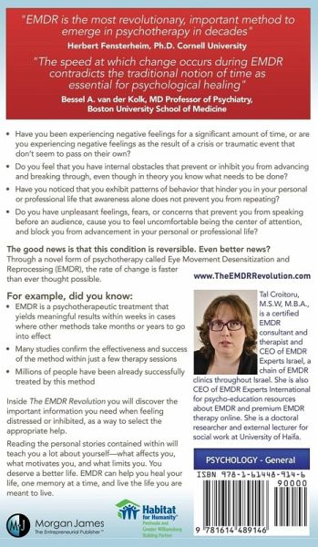 The EMDR Revolution educates readers about a revolutionary psychotherapy called EMDR, which stands for Eye Movement Desensitization and Reprocessing. The main parts of the book include a series of case studies and each case study includes lessons that readers can apply to themselves for better understanding of oneself and human nature. EMDR is the fastest and most efficient evidence-based therapy available today. It has resulted in 80-90 percent recovery from PTSD in five to twelve hours and was found to be much faster than cognitive behavior therapy. EMDR is the perfect solution for people…mehr