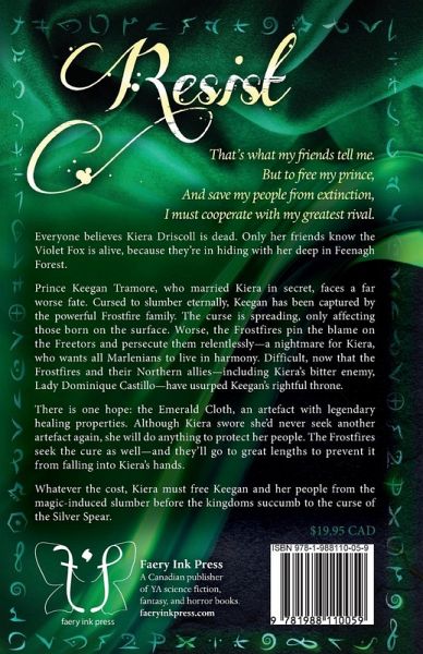 There are two kinds of people in Marlenia: those who are loyal to the Frostfire family, and those who pretend their world has not been turned upside down. Everyone believes Kiera Driscoll is dead. Only her friends know the Violet Fox is alive, because they're in hiding with her deep in Feenagh Forest. Prince Keegan Tramore, who married Kiera in secret, faces a far worse fate. Cursed to slumber eternally, Keegan has been captured by the powerful Frostfire family. The curse is spreading, only affecting those born on the surface. Worse, the Frostfires pin the blame on the Freetors and persecute them relentlessly-a nightmare for Kiera, who wants all Marlenians to live in harmony. Difficult, now that the Frostfires and their Northern allies-including Kiera's bitter enemy, Lady Dominique Castillo-have usurped Keegan's rightful throne. There is one hope: the Emerald Cloth, an artefact with legendary healing properties. Although Kiera swore she'd never seek another artefact again, she will do anything to protect her people. The Frostfires seek the cure as well-and they'll go to great lengths to prevent it from falling into Kiera's hands. Whatever the cost, Kiera must free Keegan and her people from the magic-induced slumber before the kingdoms succumb to the curse of the Silver Spear.