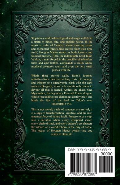 The Emerald Guardians - Hougun Manor by Josiah Cornell A groundbreaking dark epic fantasy that is as immersive as it is gripping. When war-scarred warrior Talon Valskar forges an unbreakable bond with the last emerald dragon, Myrcanthor, he is thrust into a destiny he never sought. Together, they must defend Hougun Manor, a living fortress rooted in Britain's ancient ley lines-against the rising power of Daegrith, the Dream-Eater, whose twisted sorcery threatens to unravel the fabric of the world itself. As Talon endures three harrowing trials-courage, wisdom, and sacrifice, he is stripped of everything he thought he was. What remains is a man caught between vengeance and duty, and a dragon bound to him by shared breath and heartbeat. Their fate is inseparable, their choices devastating. Blending dazzling myth, raw human struggle, and unrelenting suspense, The Emerald Guardians - Hougun Manor is an unputdownable page-turner. It reimagines the dragon-human bond in a way that is both innovative and timeless, creating a fantasy that feels startlingly unique in today's landscape. This is fantasy that is not only captivating but also terrifying in its scope, exploring power, sacrifice, and what it truly means to be bound to something older than gods themselves. Fans of The Witcher, The Poppy War, and The Priory of the Orange Tree will find themselves drawn into a world of myth and ruin, where every choice comes at a cost and no victory is without scars. Josiah Cornell delivers a debut that is intense, emotional, and unforgettable. A true must-read for lovers of dark, character-driven fantasy.