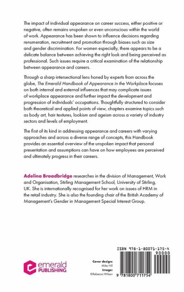 The first of its kind in addressing appearance and careers with varying approaches and across a diverse range of concepts, this Handbook provides an essential overview of the unspoken impact that personal presentation and assumptions can have on how employees are perceived and ultimately progress in their careers.
