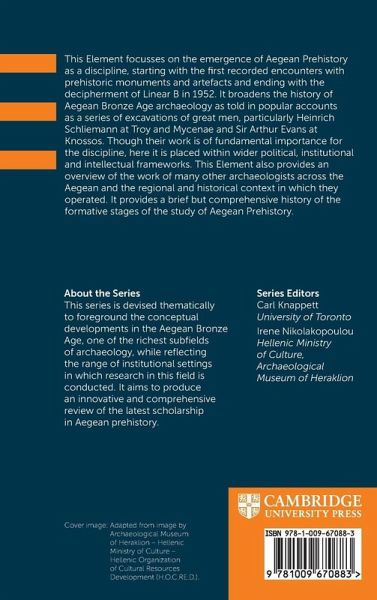 This Element focusses on the emergence of Aegean Prehistory as a discipline, from the first recorded encounters with prehistoric artefacts to the decipherment of Linear B in 1952. It also provides an overview of the work of many other archaeologists across the Aegean and the regional and historical context in which they operated.