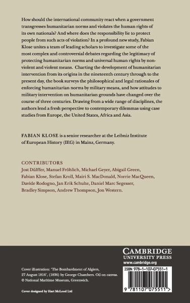 How should the international community react when a government transgresses humanitarian norms and violates the human rights of its own nationals? And where does the responsibility lie to protect people from such acts of violation? In this profound study, Fabian Klose unites a team of leading scholars to investigate some of the most complex and controversial debates regarding the legitimacy of protecting humanitarian norms and universal human rights by non-violent and violent means. Charting the development of humanitarian intervention from its origins in the nineteenth century through to the present day, the book surveys the philosophical and legal rationales of enforcing humanitarian norms by military means, and how attitudes to military intervention on humanitarian grounds have changed over the course of three centuries. Drawing from a wide range of disciplines, the authors lend a fresh perspective to contemporary dilemmas using case studies from Europe, the United States, Africa and Asia.