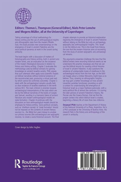 Taking advantage of critical methodology for history-writing and the use of anthropological insights and ethnographic data from the modern Middle East, this study aims at providing new understandings on the emergence of Israel in ancient Palestine and the socio-political dynamics at work in the Levant during antiquity. The book begins with a discussion of matters of historiography and history-writing, both in ancient and modern times, and an evaluation on the incidence of the modern theological discourse in relation to history and history-writing. Chapter 2 evaluates the methodology used by biblical scholars for gaining knowledge on ancient Israelite society. Pfoh argues that such attempts often apply socio-scientific models on biblical narratives without external evidence of the reconstructed past, producing a virtual past reality which cannot be confirmed concretely. Chapter 3 deals with the archaeological remains usually held as clear evidence of Israelite statehood in the tenth century BCE. The main criticism is directed towards archaeological interpretations of the data which are led by the biblical narratives of the books of Judges and Samuel, resulting in a harmonic blend of ancient literature and modern anthropological models on state-formation. Chapter 4 continues with the discussion on how anthropological models should be employed for history-writing. Socio-political concepts, such as chiefdom society or state formation should not be imposed on the contents of ancient literary sources (i.e., the Bible) but used instead to analyse our primary sources (the archaeological and epigraphic records), in order to create a socio-historical account. The final chapter attempts to provide an historical explanation regarding the emergence of Israel in ancient Palestine without relying on the Bible but only on archaeology, epigraphy and anthropological insights. This Israel is not the biblical one. This is the Israel from history, the one that the modern historian aims at recovering from the study of ancient epigraphic and archaeological remains. The arguments presented challenge the idea that the biblical writers were recording historical events as we understand this practice nowadays and that we can use the biblical records for creating critical histories of Israel in ancient Palestine. It also questions the existence of undisputable traces of statehood in the archaeological record from the Iron Age, as the biblical images about a United Monarchy might lead us to believe. Thus, drawing on ethnographic insights, we may gain a better knowledge on how ancient Levantine societies functioned, providing us with a context for understanding the emergence of historical Israel as a major highland patronate, with a socio-political life of almost two centuries. It is during the later periods of ancient Palestines history, the Persian and the Graeco-Roman, that we find the proper context into which biblical Israel is created, beginning a literary life of more than two millennia.