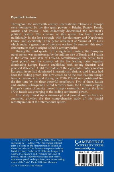 Throughout the nineteenth century, international relations in Europe were dominated by five great powers - Britain, France, Russia, Austria and Prussia. The creation of this system has been located traditionally in the long struggle with revolutionary and Napoleonic France. By contrast, this study demonstrates that its origins lie half a century earlier. During the third quarter of the eighteenth century, the European states-system was transformed by the military rise of Russia and Prussia in the Seven Years War of 1756–63. Eastern Europe became pre-eminent, and during the 1770s Poland was partitioned for the first time, while Russia and Austria also seized territory from the Ottoman empire. Europe's centre of gravity moved sharply eastwards, and by the later 1770s Russia was emerging as the leading continental power. This study, based upon manuscript and printed sources from six countries, provides the first comprehensive study of these crucial events.