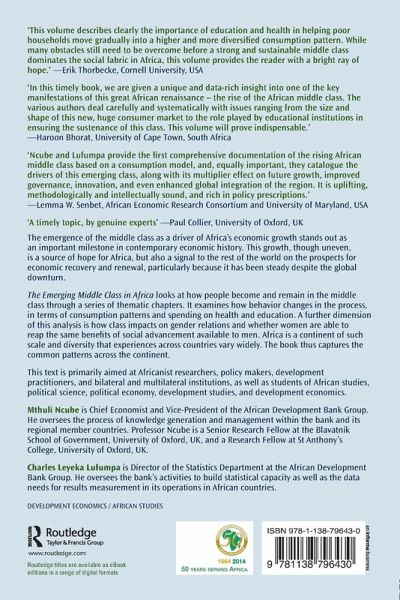 The emergence of the African middle class as a driver of Africa's economic growth stands out as an important milestone in Africa's contemporary economic history. This growth, though uneven, is a source of hope for Africa, but also a signal to the rest of the world on the prospects for economic recovery and renewal, particularly because it has been steady despite the global downturn. The Emerging Middle Class in Africa analyses specific aspects of the lives of the middle class in Africa. It looks at how people become and remain in the middle class through a series of thematic chapters. It examines how behaviour changes in the process, in terms of consumption patterns and spending on health and education. A further dimension of this analysis is how class impacts on gender relations and whether women are able to reap the same benefits of social advancement available to men. Africa is a continent of such scale and diversity that experiences across countries vary widely. The book thus captures the common patterns across the continent. This text is primarily aimed at Africanist researchers, policy makers, development practitioners, and bilateral and multilateral institutions, as well as students of African studies, political science, political economy, development studies, and development economics.