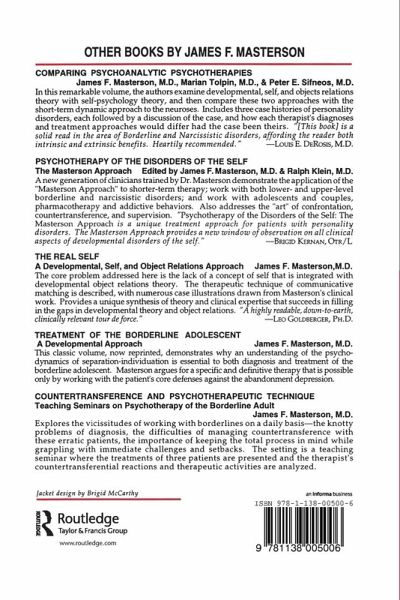 At last, this much?awaited volume sheds substantial light on one of the most difficult disorders to diagnose and treat: the closet narcissistic disorders of the self. The third of a series on the disorders of the self, and the first written by Dr. Masterson since 1985, the book fills a crucial niche in his work and in the field of personality disorders. It describes not only the psychopathology and treatment of this disorder but, more importantly, demonstrates the key dynamic of the disorders of the self triad: self activation leads to anxiety and depression, which leads to defense. This is the central dynamic of all the disorders of the self, and its particular manifestations in the closet narcissistic personality disorder are described along with the therapeutic techniques required to identify and manage it. The volume succeeds in clarifying a great deal of the clinical confusion surrounding the disorder, and addresses such questions as: What does the clinical picture look like? What is the reason for the diagnostic confusion? How does one resolve it? What other disorders does this disorder mimic? How do you differentiate it from the borderline and/or schizoid disorders of the self? What are some possible etiologic factors? What precipitates a clinical syndrome? What is the intrapsychic structure of this disorder, and how does it compare with other disorders? What is the central psychodynamic? What is a mirroring interpretation of narcissistic vulnerability, and why is it the intervention of choice? What is projective identification, and why is it so important to countertransference reactions to these patients? The Emerging Self offers a clear, down to earth, hands?on presentation of interest to all therapists students, teachers, and practitioners. It will enable the therapist to identify what emotional issues are on center stage, understand how to deal with it, and also how to evaluate the results of his or her efforts. Beyond that, it will illustrate the variations in countertransference that occur as a result of projective identification. Above all, the volume will take its substantial place alongside Psychotherapy of the Borderline Adult and The Real Self as one of the three pillars of Dr. Masterson's whole theoretical approach.
