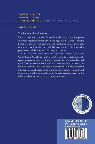 Emission lines provide a powerful tool to study the physical properties and chemical compositions of astrophysical objects in the Universe, from the first stars to objects in our galaxy. The analysis of emission lines allows us to estimate the star formation rate and initial mass function of ionizing stellar populations, and the properties of active galactic nuclei. This book presents lectures from the eighteenth Winter School of the Canary Islands Astrophysics Institute (IAC), devoted to emission lines and the astrophysical objects that produce them. Written by prestigious researchers and experienced observers, it covers the formation of emission lines and the different sources that produce them. It shows how emission lines in different wavelengths, from ultraviolet to near infrared, can provide essential information on understanding the formation and evolution of astrophysical objects. It also includes practical tutorials for data reduction, making this a valuable reference for researchers and graduate students.