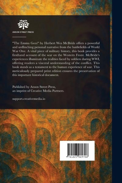 "The Emma Gees" by Herbert Wes McBride offers a powerful and unflinching personal narrative from the battlefields of World War One. A vital piece of military history, this book provides a firsthand account of the war on the Western Front. McBride's experiences illuminate the realities faced by soldiers during WWI, offering readers a visceral understanding of the conflict. This book stands as a testament to the human experience of war. This meticulously prepared print edition ensures the preservation of this important historical document. This work has been selected by scholars as being culturally important, and is part of the knowledge base of civilization as we know it. This work is in the public domain in the United States of America, and possibly other nations. Within the United States, you may freely copy and distribute this work, as no entity (individual or corporate) has a copyright on the body of the work. Scholars believe, and we concur, that this work is important enough to be preserved, reproduced, and made generally available to the public. We appreciate your support of the preservation process, and thank you for being an important part of keeping this knowledge alive and relevant.