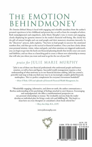 Would you like access to the insight that has literally turned the financial industry upside down? It's the notion that we each have specific emotions, or emotional patterns, attached to money that were imprinted on us before we even had a choice to have a checking account. Whether you personally recognize this or not, today those emotions impact every financial decision you face. They are responsible for how you make money and how you keep it, or whether, as is often the case, it seems to go out the door faster than it comes in. Amazingly, those feelings are not just fleeting reactions; they actually influence how much money you'll make and amass throughout your entire life! The purpose of this book is to help you recognize your emotions behind money, and likewise help you discover healthier ways to respond to those feelings. Through everyday language, lively anecdotes, and engaging exercises it will: - Help you see your life and your money through a different lens; - Empower you to align your financial destiny by living from the inside out; - Teach you how to discover and define what you truly desire to live abundantly.