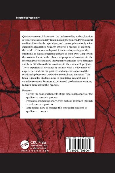This book focuses on the place and purpose of emotions in the research process, and investigates the appropriate boundaries. Designed to explore how to manage the emotional content of research, the text serves as a supplement to qualitative research method courses, and is an excellent reference for the professional as well. It covers the risks and benefits for the process and those involved in it on an emotional and personal level and presents a multidisciplinary cross cultural approach with multinational contributors It also focuses on the place and purpose of emotions in the research process.