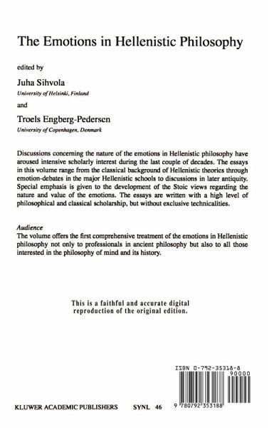Discussions about the nature of the emotions in Hellenistic philosophy have aroused intense scholarly interest over the last few years. The topics covered by the essays in this volume range from the classical background of Hellenistic theories, through debates on emotion in the major Hellenistic schools, to discussions in later antiquity. Special emphasis is placed on the development of the Stoic views on the nature and value of the emotions. The essays are written with a high level of philosophical and classical scholarship, but contain no exclusive technicalities.