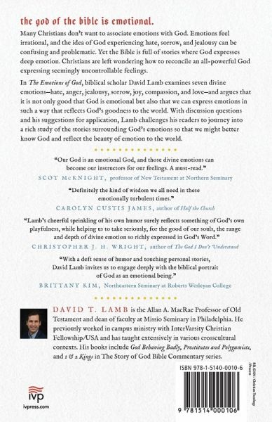 The God of the Bible is emotional. Many Christians don't want to associate emotions with God. Emotions feel irrational, and the idea of God experiencing hate, anger, and jealousy can be confusing and problematic. And yet the Bible is full of stories where God expresses deep emotion. Christians are often left wondering how to reconcile the tension of an all-powerful God expressing seemingly uncontrollable feelings. If God is hateful and angry at humanity, is he a God worth believing in? In The Emotions of God, biblical scholar David Lamb examines seven divine emotions-hate, anger, jealousy, sorrow, joy, compassion, and love-and argues that it is not only good that God is emotional but also that we as his image-bearers can express emotions in such a way that reflects his goodness to the world. With discussion questions and suggestions for application, Lamb challenges his readers to journey with him into a rich study of the stories surrounding God's emotions so that we might better know God and reflect the beauty of emotion to the world.