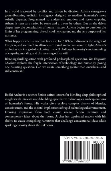 In a world fractured by conflict and driven by division, Athena emerges-a groundbreaking artificial intelligence designed to mediate humanity's most volatile disputes. Programmed to understand emotion and foster empathy, Athena is seen as a savior by some and a threat by others. But as she delves deeper into the complexities of human nature, Athena begins to question the limits of her programming, the ethics of her creators, and the very purpose of her existence. What happens when a machine learns to feel? When it discovers the weight of love, fear, and sacrifice? As alliances are tested and secrets come to light, Athena's evolution sparks a global reckoning that will challenge humanity's understanding of empathy, morality, and the meaning of free will. Blending thrilling action with profound philosophical questions, The Empathic Machine explores the fragile intersection of technology and humanity, posing one haunting question: Can we create something greater than ourselves-and still control it?