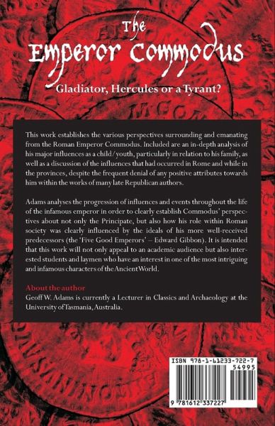 This work establishes the various perspectives surrounding and emanating from the Roman Emperor Commodus. Included are an in-depth analysis of his major influences as a child/youth, particularly in relation to his family, as well as a discussion of the influences that had occurred in Rome and while in the provinces, despite the frequent denial of any positive attributes towards him within the works of many late Republican authors. Adams analyses the progression of influences and events throughout the life of the infamous emperor in order to clearly establish Commodus' perspectives about not only the Principate, but also how his role within Roman society was clearly influenced by the ideals of his more well-received predecessors (the 'Five Good Emperors' - Edward Gibbon). It is intended that this work will not only appeal to an academic audience but also interested students and laymen who have an interest in one of the most intriguing and infamous characters of the Ancient World.