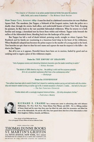 New York City, August 1889: within sight of Madison Square Park, a man lays dead in a darkened construction site. Jim Tupper, a Mohawk of the Iroquois nation, stands over the body. Within minutes he's seen. And as police whistles scream in the night, he runs, knowing there is but one place to hide. With the police hounding him, Tupper makes his way back to the place he knows best-the vast, unsettled Adirondack wilderness. What he finds upon his return is both familiar and strange, a homeland torn by forces from within and without. But after surviving a deadly chase through the streets, back alleys, and underworld haunts of a teeming lower Manhattan, he is home, and Tupper sinks beneath the surface of the Adirondack forest, blending back into the landscape of his youth. But he has left a trail of death behind, a trail leading dangerously close to a fantastic luxury hotel deep in the heart of the wilderness where Captain Tom Braddock and his family are vacationing. Worlds collide when Tom's son becomes the prime suspect in the murder of a young maid at the hotel. To clear him, Braddock has no choice but to find the illusive Indian, a man who knows the forest as well as Tom knows the streets. Determined to catch Tupper no matter the cost, Braddock launches an epic chase through more than a hundred miles of Adirondack lakes, rivers and forest, his guide the legendary Mitchell Sabattis. But not all in the Adirondacks is as it appears. Powerful forces have been set in motion, and as developers make manifest their need to rein in the wilderness, Tom too wonders what the vast forests might hold. Will he find the clues he needs to exonerate his son and put a killer behind bars? Or will the great forest smother its secrets in shadow until its price has been paid in blood?
