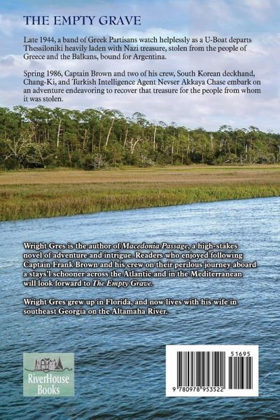 The Empty Grave Late 1944, a band of Greek Partisans, led by OSS operative, Freddie Chase, watch helplessly as a U-Boat departs Thessiloniki heavily laden with Nazi treasure stolen from the people of Greece and the Balkans, bound for Argentina. On board, a high ranking Nazi functionary jealously guards the treasure. The U-boat captain and crew fight overwhelming Allied opposition transiting the Mediterranean. Redirected by Hitler to detour to patrol along the US eastern seaboard, the sub is damaged and forced to seek shelter for repairs along the Georgia coast. When the U-boat eventually limps in to Argentina with its Nazi passenger, the vessel is under the command of the First Officer. The treasure is not on board; neither is the commanding officer. Spring 1986, Captain Frank Brown and two of his crew, South Korean deckhand Chang-Ki, and Turkish Intelligence Agent Nevser Akkaya Chase take time off from their duties aboard the sailing yacht, Belle Tata, in the Caribbean to run down a Nazi war criminal and recover the lost treasure. Before following the cold trail to Argentina, Brown is attacked in Tampa, and their quest takes an unexpected turn toward the Georgia coast as they attempt to unravel the mystery and find the treasure. Then they learn that finding the treasure is only the beginning. The Empty Grave is a high-stakes, high-adventure, stand-alone novel. Readers who enjoyed Macedonia Passage, following Captain Frank Brown and his crew on their perilous journey aboard a stays'l schooner crossing the Atlantic and into the Mediterranean two years earlier, will look forward to this adventure.