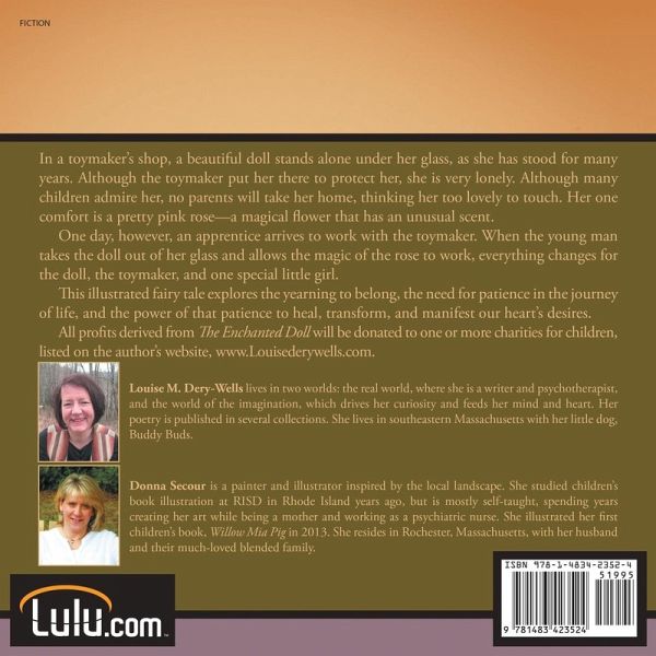 In a toymaker's shop, a beautiful doll stands alone under her glass, as she has stood for many years. Although the toymaker put her there to protect her, she is very lonely. Although many children admire her, no parents will take her home, thinking her too lovely to touch. Her one comfort is a pretty pink rose-a magical flower that has an unusual scent. One day, however, an apprentice arrives to work with the toymaker. When the young man takes the doll out of her glass and allows the magic of the rose to work, everything changes for the doll, the toymaker, and one special little girl. This illustrated fairy tale explores the yearning to belong, the need for patience in the journey of life, and the power of that patience to heal, transform, and manifest our heart's desires. All profits derived from The Enchanted Doll will be donated to one or more charities for children, listed on the author's website, www.Louisederywells.com.