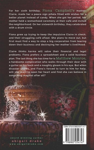 A Gilmore Girls meets The Good Witch magical romantic comedy! Fiona Campbell is done. Done with keeping her flighty mother's crumbling café afloat. Done with pretending their backyard fountain isn'tpossessed. And absolutely done with worrying about what might break or go wrong next. She's got plans-sensible, practical plans. She's ready to move away and start a life of her own. The last thing she needs is yet another complication, and Matthew Monroe is definitely a complication. The second he struts into their café with a guitar on his back and a naughty gleam in his eyes, Fiona knows he's trouble. He's the kind that writes songs about broken hearts and disappears before breakfast. She wants nothing to do with him, but when disaster strikes, and her life gets turned upside down, it seems Matthew might be the only one she can turn to for help. Unfortunately, Matthew represents all the things she's spent a lifetime trying to escape. She has her future mapped out in detail. She wants safety and predictability, not magic and mayhem and a handsome man with secrets. But could it be that the best thing that ever happened to her is the one thing she never planned on? Full of quirky characters, cozy vibes, and slow-burn chemistry, this enchanting rom-com will sweep you off your feet-and maybe even make you believe in magic again.