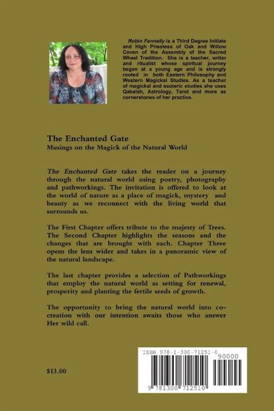 The Enchanted Gate takes the reader on a journey through the natural world using poetry, photography and pathworkings. The invitation is offered to look at the world of nature as a place of magick, mystery and beauty as we reconnect with the living world that surrounds us. The First Chapter offers tribute to the majesty of Trees. The Second Chapter highlights the seasons and the changes that are brought with each. Chapter Three opens the lens wider and takes in a panoramic view of the natural landscape. The last chapter provides a selection of Pathworkings that employ the natural world as setting for renewal, prosperity and planting the fertile seeds of growth. The opportunity to bring the natural world into co-creation with our intention awaits those who answer Her wild call.