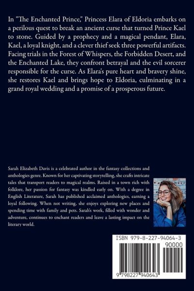 In "The Enchanted Prince," Princess Elara of Eldoria embarks on a perilous quest to break an ancient curse that turned Prince Kael to stone. Guided by a prophecy and a magical pendant, Elara, Kael, a loyal knight, and a clever thief seek three powerful artifacts. Facing trials in the Forest of Whispers, the Forbidden Desert, and the Enchanted Lake, they confront betrayal and the evil sorcerer responsible for the curse. As Elara's pure heart and bravery shine, she restores Kael and brings hope to Eldoria, culminating in a grand royal wedding and a promise of a prosperous future.