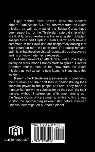 Eight months have passed since the incident aboard Pluto Station Six. The survivors from the Berlin mission, as well as most of the Space Corps, have been searching for the Thlelolelan asteroid ship which is still at large somewhere in the solar system. Captain Joseph Sims and Captain Sarah Brillow each have a command of their own and are desperately hoping that their extended hunt will soon end. The public remains optimistic that the alien ship will eventually be discovered and its unknown intentions exposed. But when news of an attack on a Lunar Sovereignty colony on Mars' moon Phobos starts to spread, Director Burnham recalls most of the crew from the Berlin mission, as well as some new faces, to investigate this incident. It seems the Thlelolelans are interested in continuing their mission and their first task is demonstrating their supreme power to the people of Earth. They hope to frighten humanity into submission so they can 'dig their tunnels' without interference. With time running out, the Space Corps officers must scramble to find a way to stop the approaching asteroid ship before they can unleash their might on our home planet...