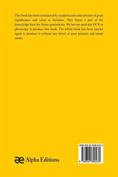 This book has been considered by academicians and scholars of great significance and value to literature. This forms a part of the knowledge base for future generations. So that the book is never forgotten we have represented this book in a print format as the same form as it was originally first published. Hence any marks or annotations seen are left intentionally to preserve its true nature.