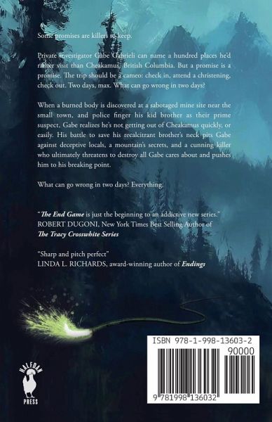 Here's the recipe that resulted in The End Game being nominated for the Crime Writers of Canada's 2024 Award of Excellence for Best Crime First Novel: Take one deadly explosion. Add one burned body and one teenaged suspect. Stir to create one week-long race for Gabe Gabrieli to save his kid brother's neck. Former lawyer turned part-time investigator Gabe Gabrieli visits a small resort town to fulfill a promise. He plans to check in, attend a christening, check out. Two days max. But when police name his kid brother as their prime suspect in a gruesome killing on a nearby mountain, Gabe leaps into a desperate search for the truth - a week-long battle that pits him against deceptive locals, a mountain's secrets, and a cunning killer who ultimately threatens to destroy all Gabe cares about and pushes him to his breaking point. Immerse yourself in Gabe's world and buckle up!