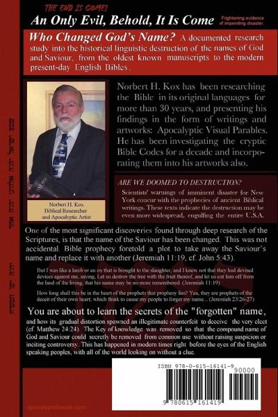 A horrendous destruction is about to consume the entire New York City area. Repercussions on the entire country will be horrifying. It is all detailed in ""The End Is Come: An Only Evil, Behold, It Is Come. Who Changed God's Name?"" This great doom is prophesied in the Bible and confirmed by current warnings of seismologists and meteorologists. The Bible Code Has recorded virtually every major incident and important historical event since the beginning of time, all written and recorded before they happened. The September 11, terrorist attack on New York is accurately recorded in great detail. An even more devastating tragedy is recorded for New York. It has the potential to produce the worst human suffrage since the great flood. It could conceivably be a destruction from which the land will never recover. Scientific evidence is in total agreement with Bible prophecy and symmetrical Bible code findings. As a bonus this book contains the newly updated version of "Who Changed God's Name?"" (Total pages, 221)