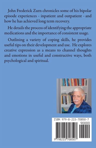 John chronicles some of his bipolar episode experiences, both in-patient and outpatient;, and how he has achieved long term recovery. He details the process of identifying the appropriate medication and the importance of consistent usage. He identifies a variety of coping skills - how to develop and use them. John then delves into how creative expression can channel thoughts and emotions in useful and constructive ways, psychological and spiritual. As examples of John's creative process, he includes 2 of his short stories and 17 poems.