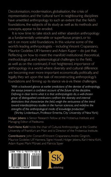 Decolonisation, modernisation, globalisation, the crisis of representation, and the 'cultural turn' in neighbouring disciplines have unsettled anthropology to such an extent that the field's foundations, the subjects of its study as well as its methods and concepts, appear to be eroded. It is now time to take stock and either abandon anthropology as a fundamentally untenable or superfluous project, or to set it on more solid foundations. In this volume some of the world's leading anthropologists - including Vincent Crapanzano, Maurice Godelier, Ulf Hannerz and Adam Kuper - do just that. Reflecting on how to meet the manifold institutional, theoretical, methodological, and epistemological challenges to the field, as well as on the continued, if not heightened, importance of anthropology in a world where diversity and cultural difference are becoming ever more important economically, politically, and legally, they set upon the task of reconstructing anthropology's foundations and firming up its stance vis-à-vis these challenges.