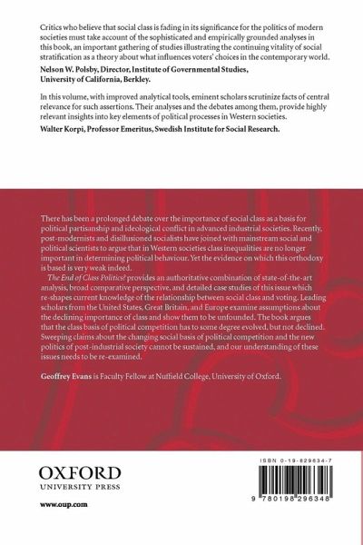 The last few decades has seen a prolonged debate over the nature and importance of social class as a basis for ideology, class voting and class politics. The prevailing assumption is that, in western societies, class inequalities are no longer important in determining political behaviour. In The End of Class Politics? leading scholars from the US, UK and Europe argue that the evidence on which the assumptions about the decline importance of class is based is unfounded. Instead, the book argues that the class basis of political competition has to some degree evolved, but not declined. Furthermore, the social basis of political competition and sweeping claims about the new politics of postindustrial society need to be re-examined.