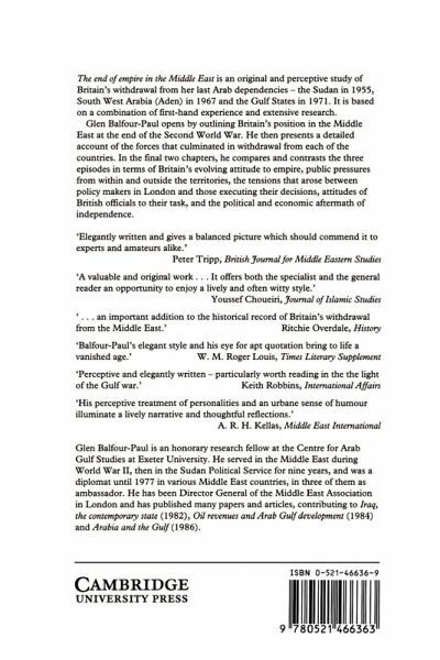 List of illustrations Foreword Sir Anthony Parsons Preface List of abbreviations Introduction 1. The regional consequences of World War II 2. The Sudan episode 3. The South West Arabian episode 4. The Gulf episode 5. Comparisons, without odium 6. Epilogues and epitaphs.